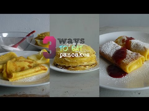 3 ways to eat pancakes - What Do You Eat Pancakes With - I made this video for an article I am writing for work. It shows three ways to use thin, lacy pancakes: on their own with a little sugar and lemon juice; filled with a ...