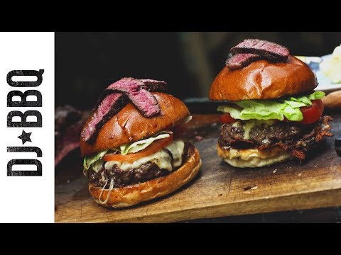 COWBOY BURGER - Pepper Jack Cheese Burger Recipe - DJ BBQ Cowboy Burger. This video show you how to make this burger. This recipe includes a 52 day dry aged White Park Rump, a flank, chuck, brisket patty, ...