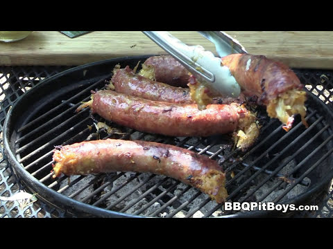 How To Make Stuffed Sausages }}- Are sausages on the menu at your Pit? Then kick it up and stuff 'em this time. The BBQ Pit Boys take some Sauerkraut, Onion and Cheese and stuff some ...