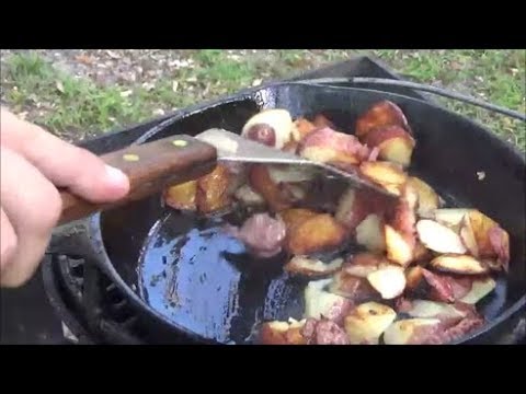 Camp Breakfast in One Cast Iron Skillet - Cast Iron Skillet Bbq - Join us for a Trip to The Beach. Washington Oaks Gardens State Park in Flagler County Florida. We fire up the Sportsmans Grill, whip out an old Wagner Cast ...