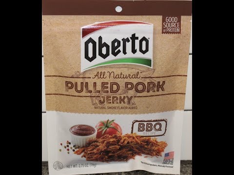 Oberto All Natural Pulled Pork Jerky BBQ Recipe Review - Pulled Pork Jerky - This is a taste test/review of the Oberto All Natural Pulled Pork Jerky BBQ Recipe. It was $4.99 at Rural King. 1 oz. (28g) = 110 calories Music Credit: “Fearless ...