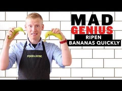 How to Ripen Bananas Quickly | Mad Genius Tips | Food & Wine - Ripen Bananas Quickly - F&W's Justin Chapple reveals how to ripen bananas in just a few minutes. Simply bake them in a 350 degree oven for 5-7 minutes. Subscribe to FOOD & WINE ...