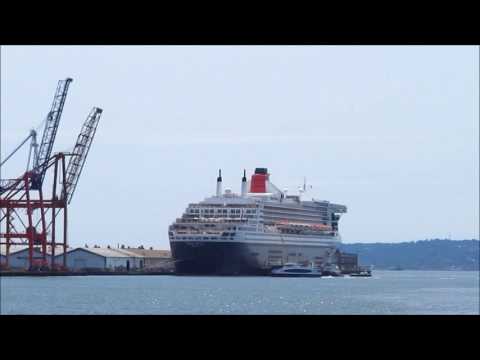 NYC ferry from Manhattan to Red Hook, Brooklyn, with views of the QM2 - Ferry Manhattan To Red Hook - On board a new NYC ferry from Wall Street/Pier 11, Manhattan, to Red Hook, Brooklyn. Part of a new series of routes along the East River, this particular ferry ...